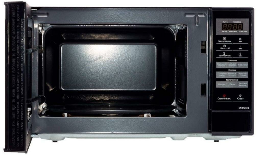 Material of the turntable and viewing window - glass; quick start function; power consumption 1250 W; number of auto-heating recipes: 3; number of auto defrost modes: 3