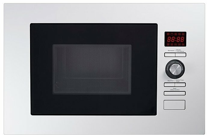 Location: built-in, volume: 20 l, switches: push-button, microwave power: 800 W, chamber interior: stainless steel. steel, width: 59.50 cm, depth: 34.40 cm, height: 38.80 cm, operating modes: defrost, additional functions