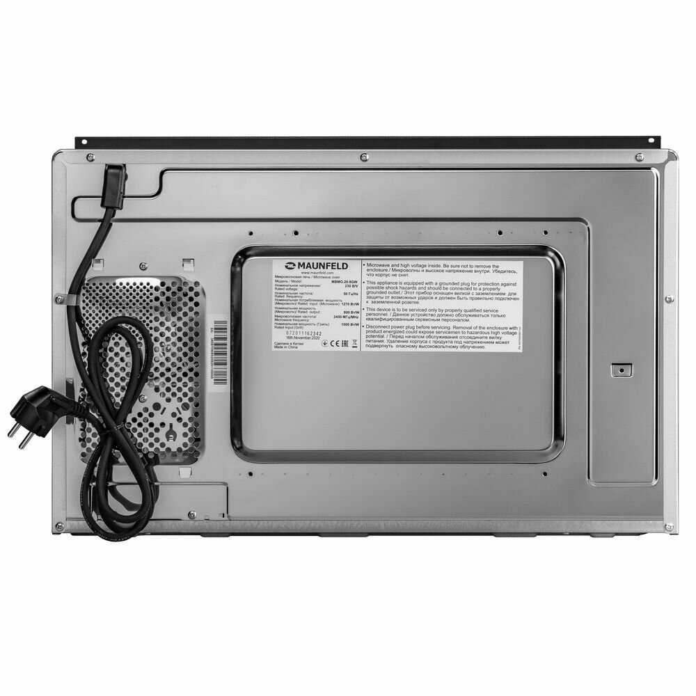 Location: built-in, volume: 20 l, switches: touch, microwave power: 800 W, inner chamber coating: stainless steel. steel, width: 59.40 cm, depth: 33.40 cm, height: 38.20 cm, operating modes: grill, microwave + grill, times