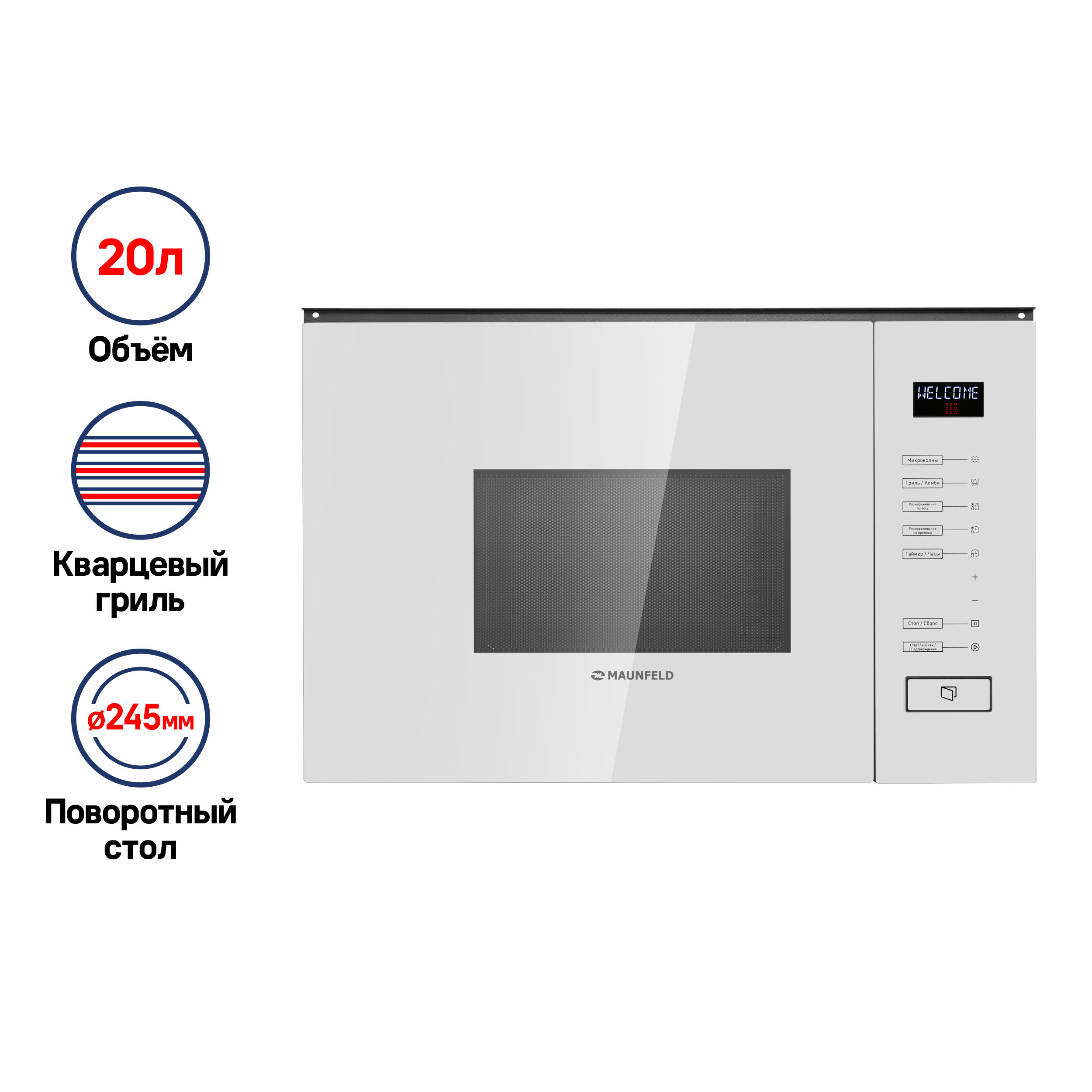 Child lock, display, camera light, Interior lighting, With turntable