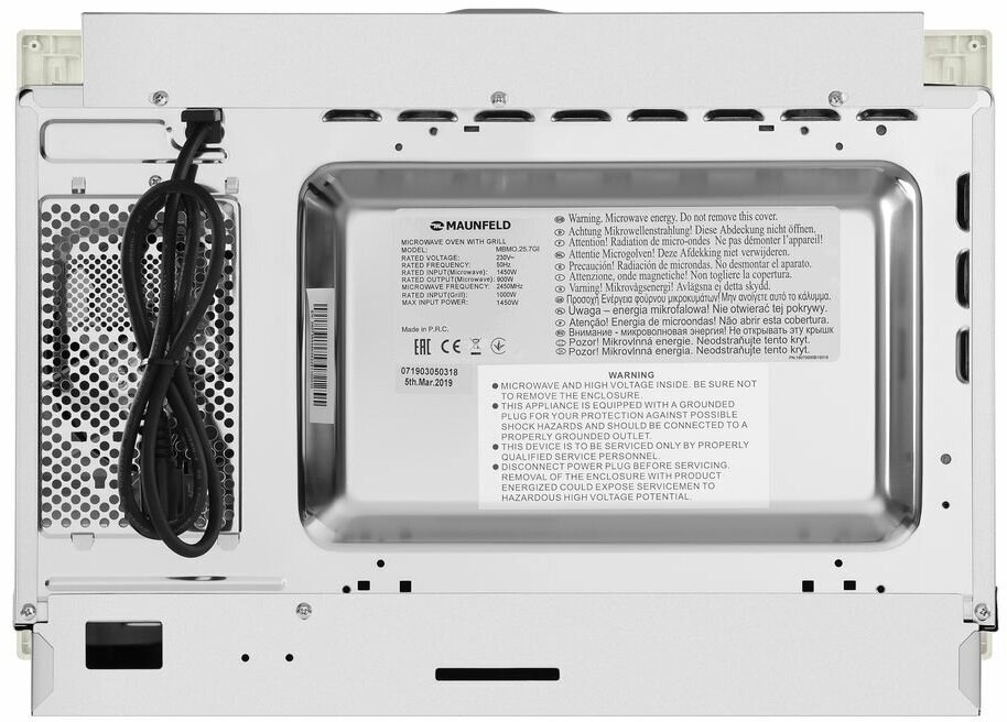 Location: built-in, volume: 25 l, switches: touch, microwave power: 1450 W, interior chamber coating: enamel, width: 59 cm, depth: 40 cm, height: 39 cm, operating modes: grill, microwave + grill, defrost , d