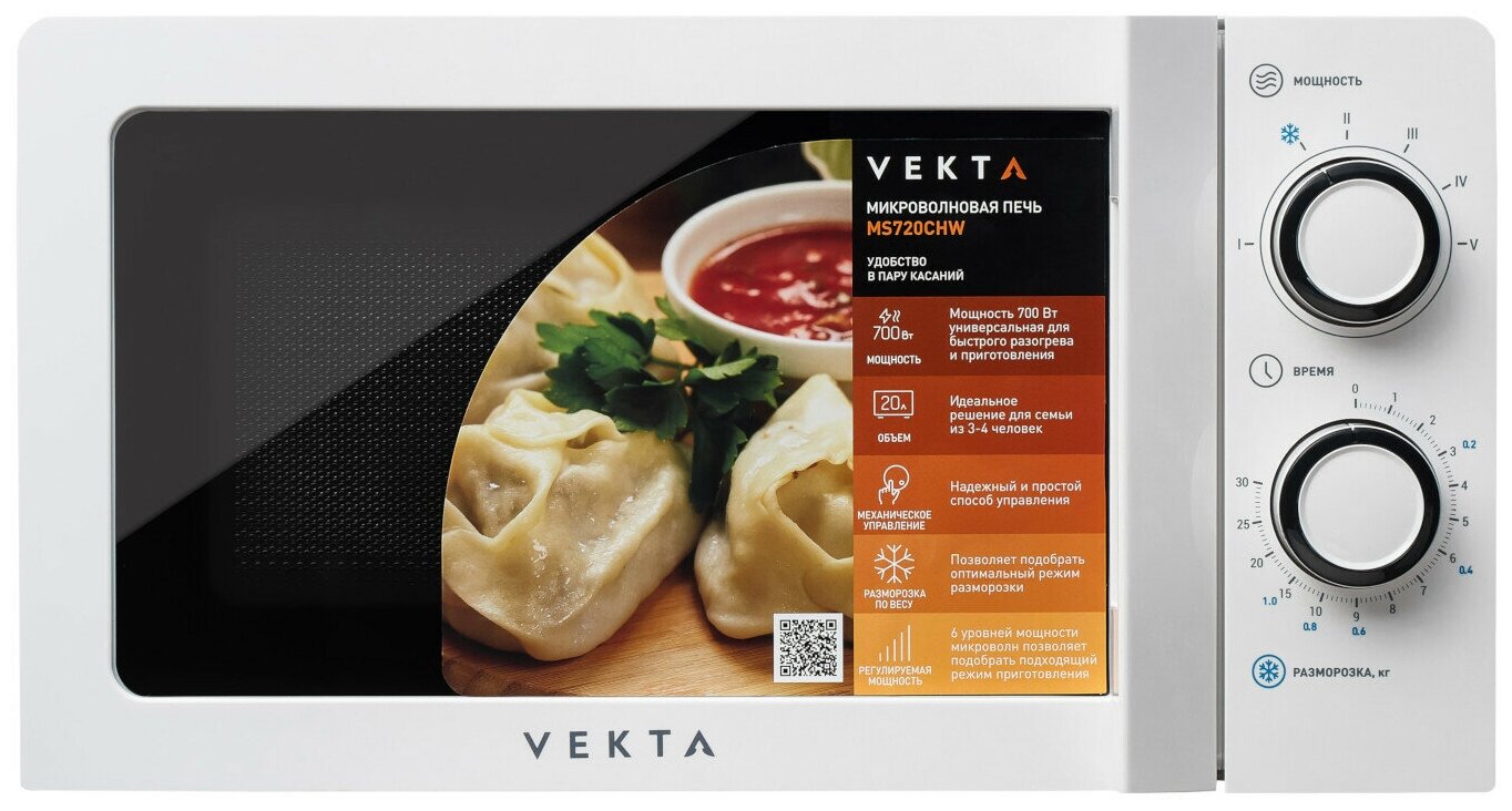 VEKTA MS720CHW 700 W; 20 l; 6 power levels; camera illumination; sound signal; defrost mode/