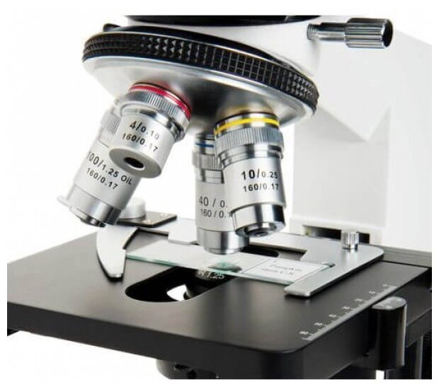 4x 4/0.10, 10x10/0.25, 40x 40/0.65 and 100x OIL100/1.25