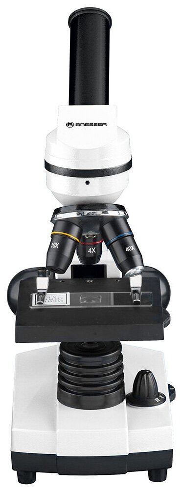 Type of microscope: biological, optical light, purpose: educational, maximum magnification: 1600 x, type of attachment: monocular, revolving device: for 3 lenses, type of illumination: LED, location illumination