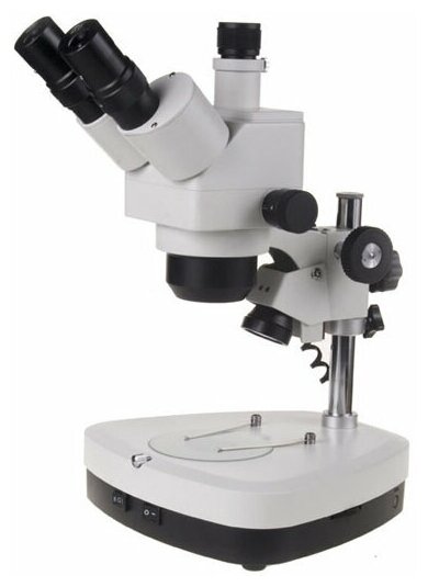Microscope type: stereoscopic, purpose: applied, maximum magnification: 40 x, attachment type: trinocular, illumination type: halogen lamp, illumination location: top, research method: bright field