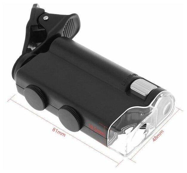 Type of microscope: optical light, portable, mount for smartphone microscope for smartphone, purpose: educational, maximum magnification: 100 x, type of attachment: none, revolver device: no, type illumination