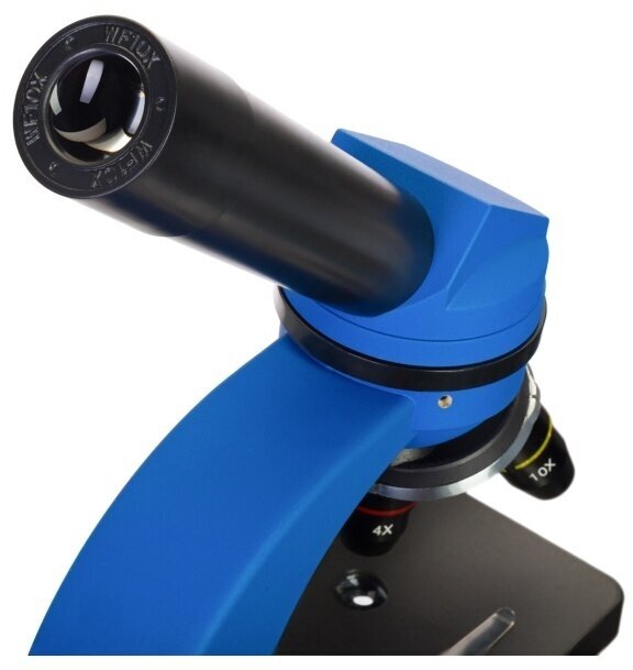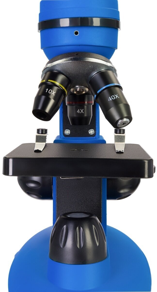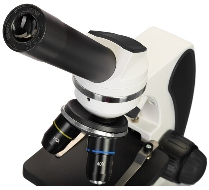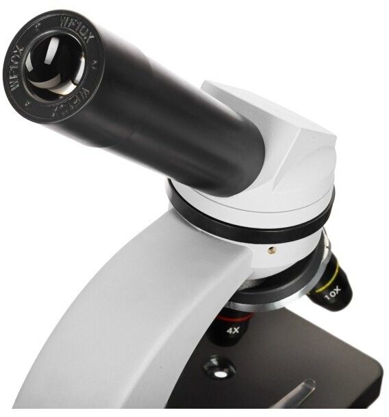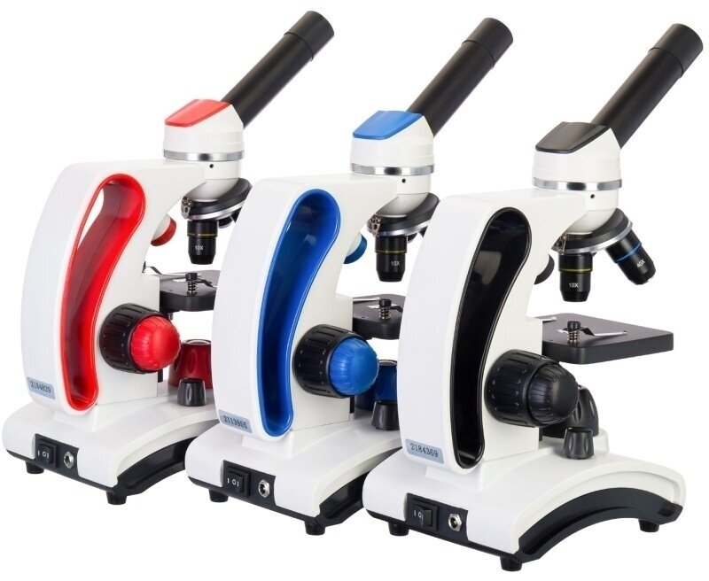 Microscope, WF10x eyepiece, achromatic lenses 4x, 10x, 40xs, AC adapter with power cable, dust cover, knowledge book “The Invisible World”, instruction manual and warranty card