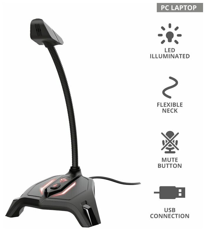 Purpose: for computer, for streaming, design: desktop, type: condenser, electret, connector: USB, polar pattern: omnidirectional, power supply: via USB, features: microphone mute button