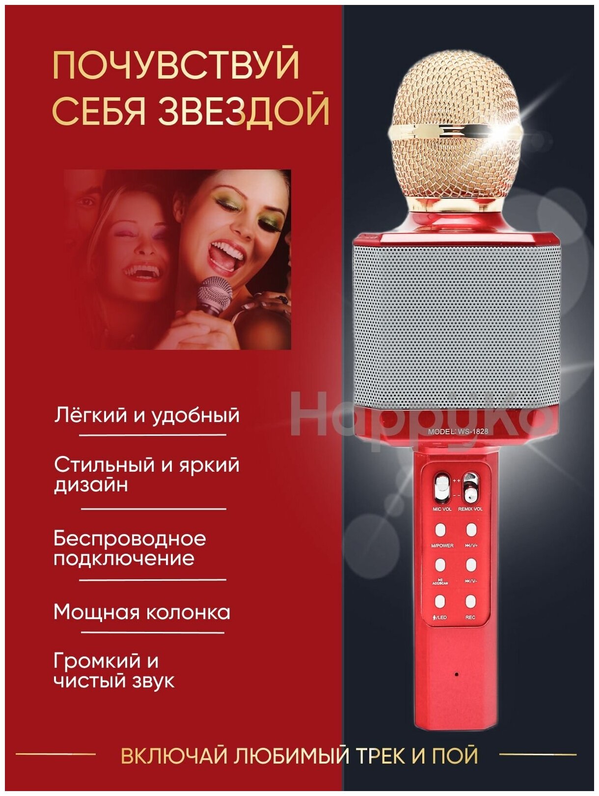 Purpose: for vocals, for karaoke, design: manual, connector: micro USB, mini jack 3.5 mm, USB 2.0, polar pattern: circular, power supply: built-in battery, features: microphone mute button