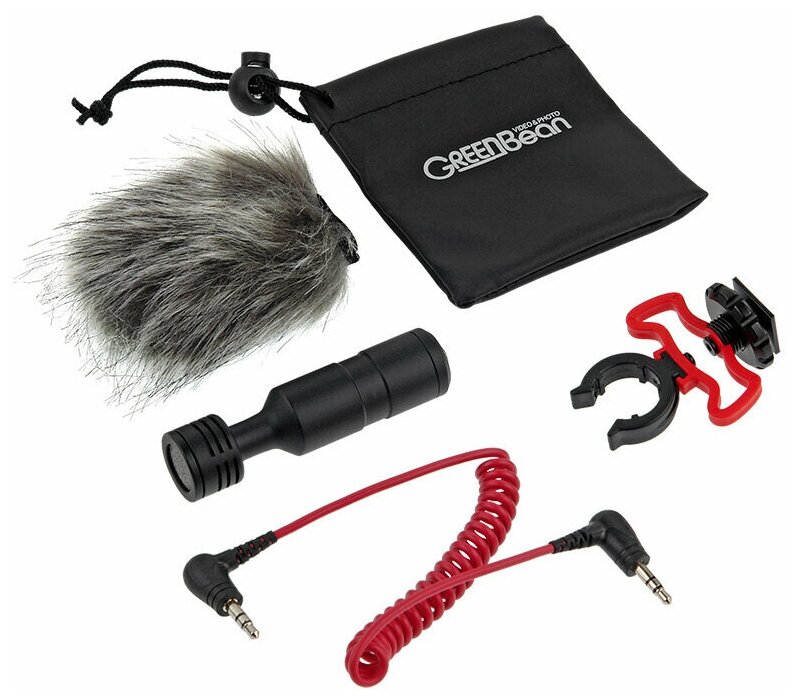 Type: On-camera condenser microphone, features: headphone output