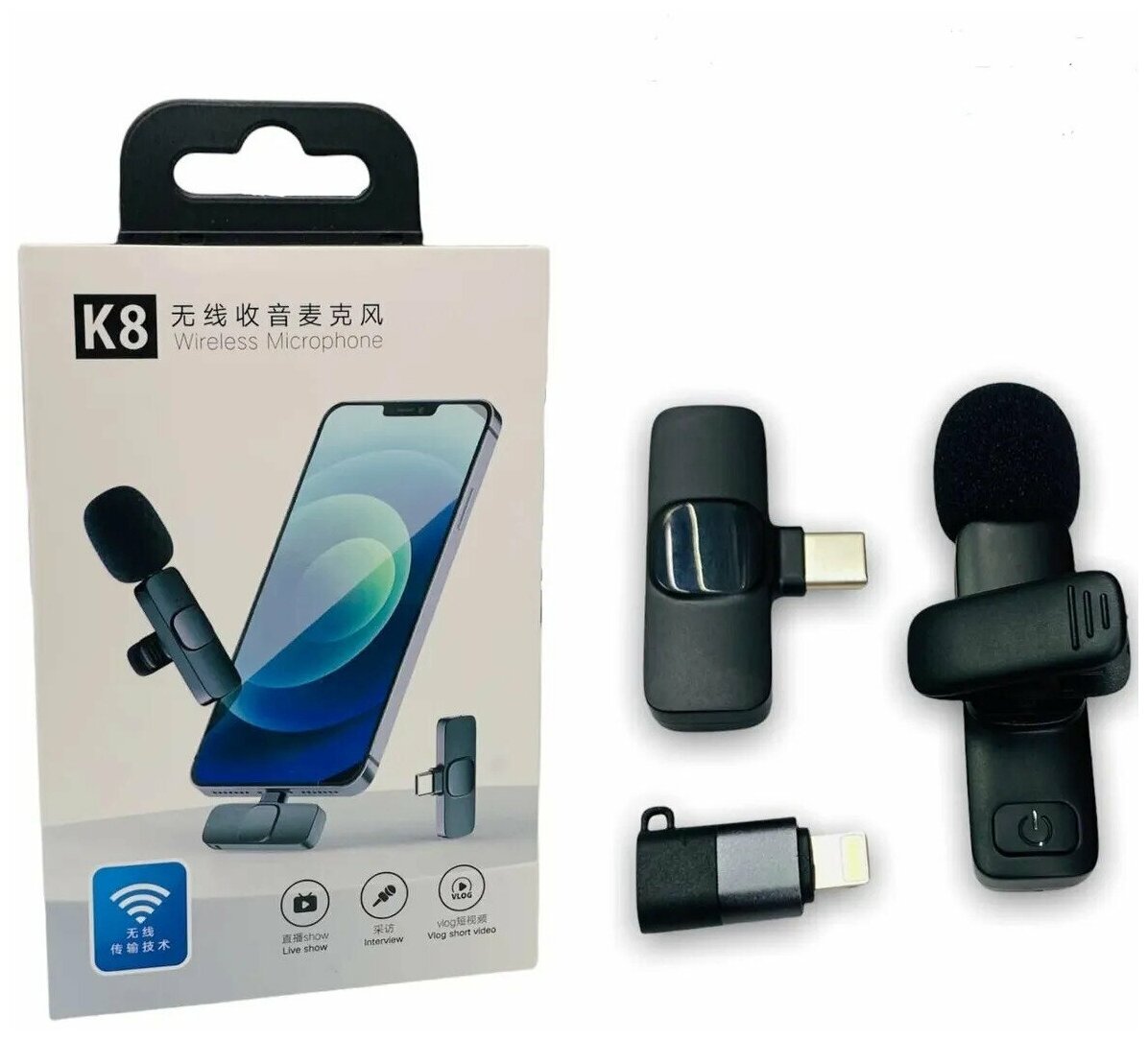 Lavalier wireless K8 / Type-C / Lightning / Wireless K8 / lavalier for iPhone black
