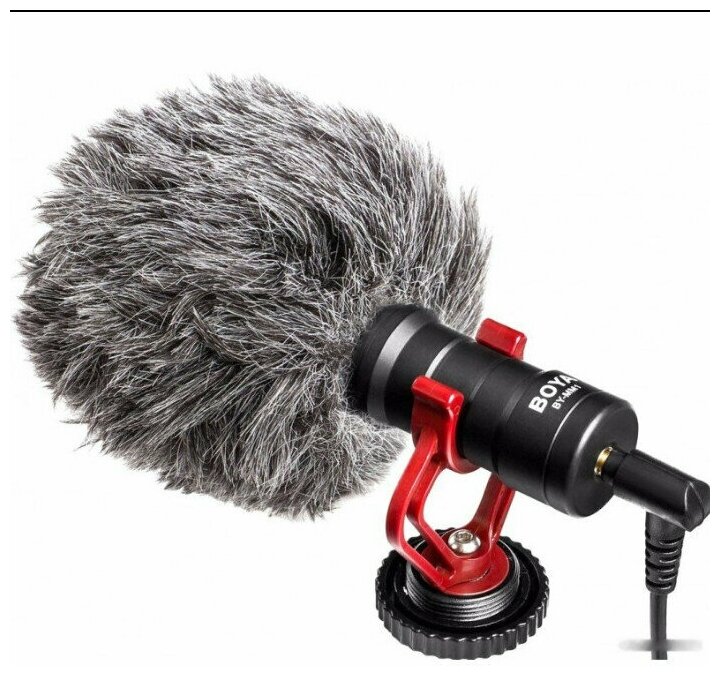 Microphone, fur windscreen, anti-vibration mount, case, user manual in Russian