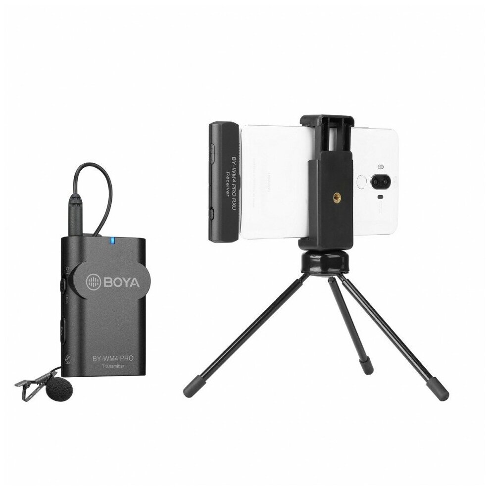 TX4 Pro transmitter, RXU receiver, lapel/lavel microphone, windscreen, microphone clip holder for lavalier microphone, hard storage case, instructions in Russian