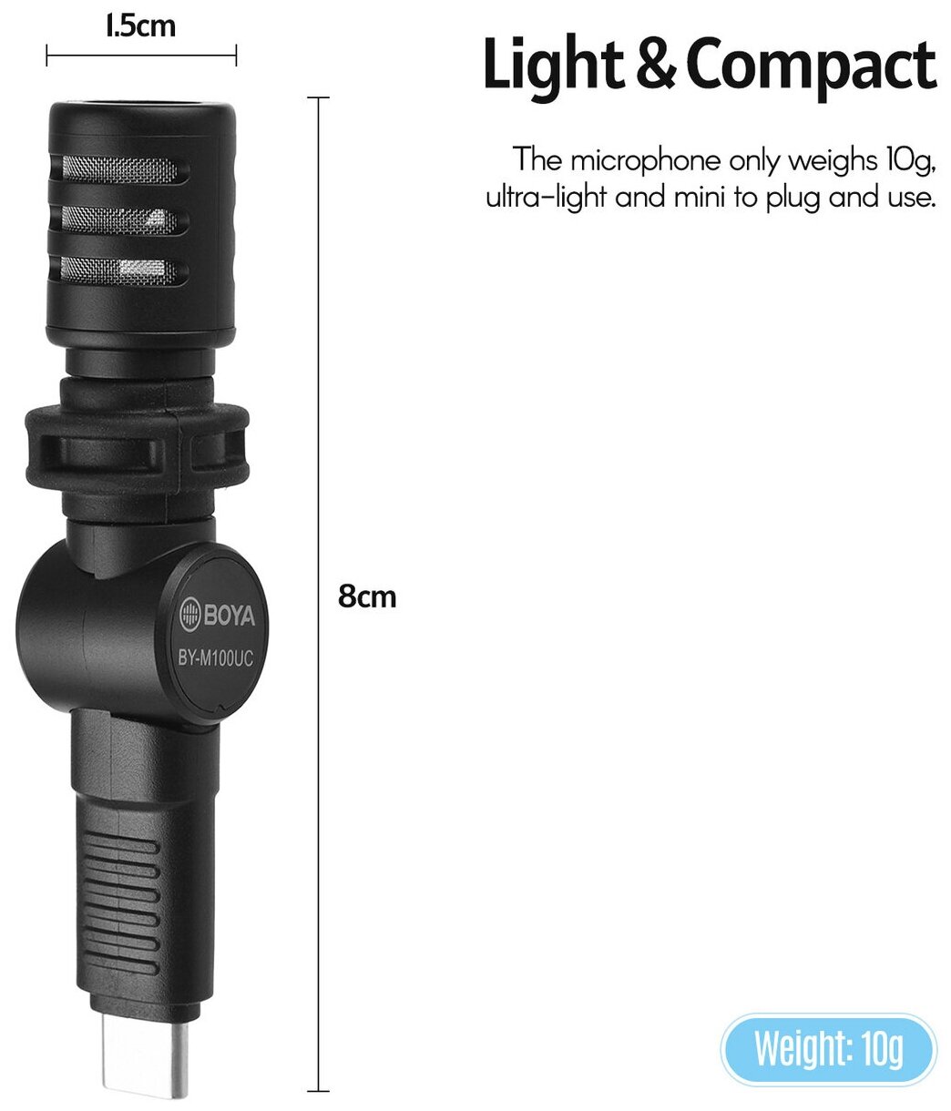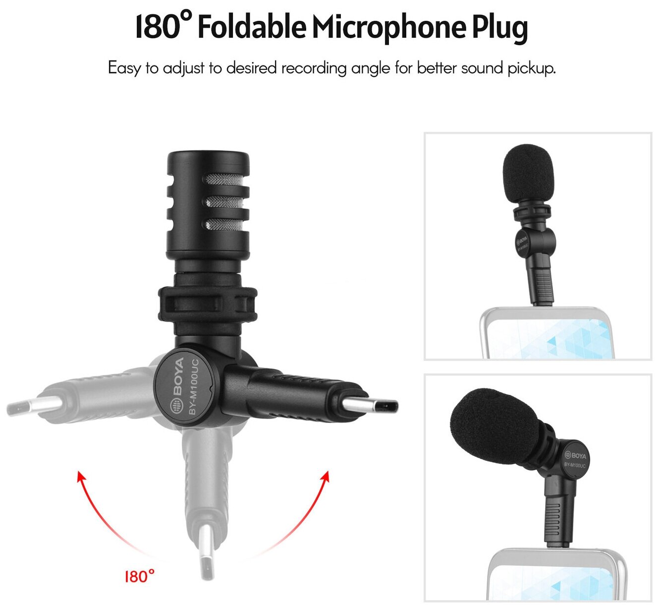 For photo and video cameras Boya BY-M100UC Mini Type-C Smartphone Condenser Foldable, black