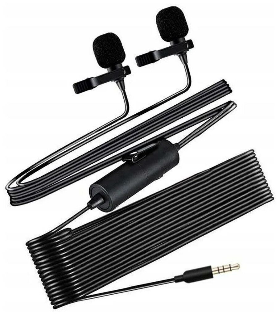 Microphone 2 pcs, amplifier, clip 3 pcs, foam attachment 3 pcs, adapter Jack 3.5 4pin female - Jack 6.3 2pin male, storage bag, spare battery LR44.