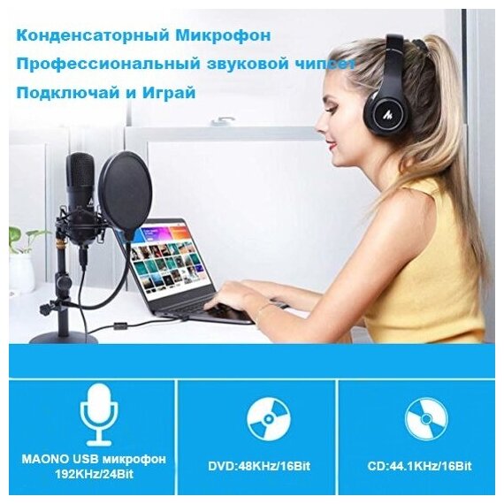 Purpose: for computer, for podcasts/radio/TV, for streaming, design: desktop, type: condenser, connector: USB, polar pattern: cardioid, power supply: via USB