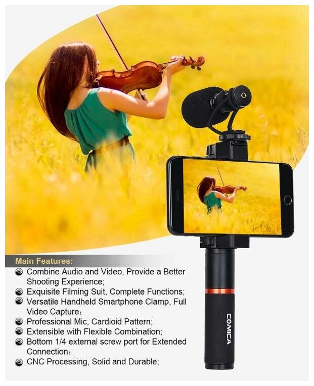 Purpose: for smartphone/tablet, design: desktop, with instrument mount, type: electret, connector: mini jack 3.5 mm, polar pattern: cardioid, power supply: phantom