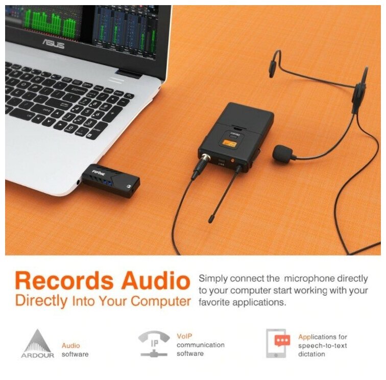Transmitter, USB receiver, lavalier microphone, headset microphone