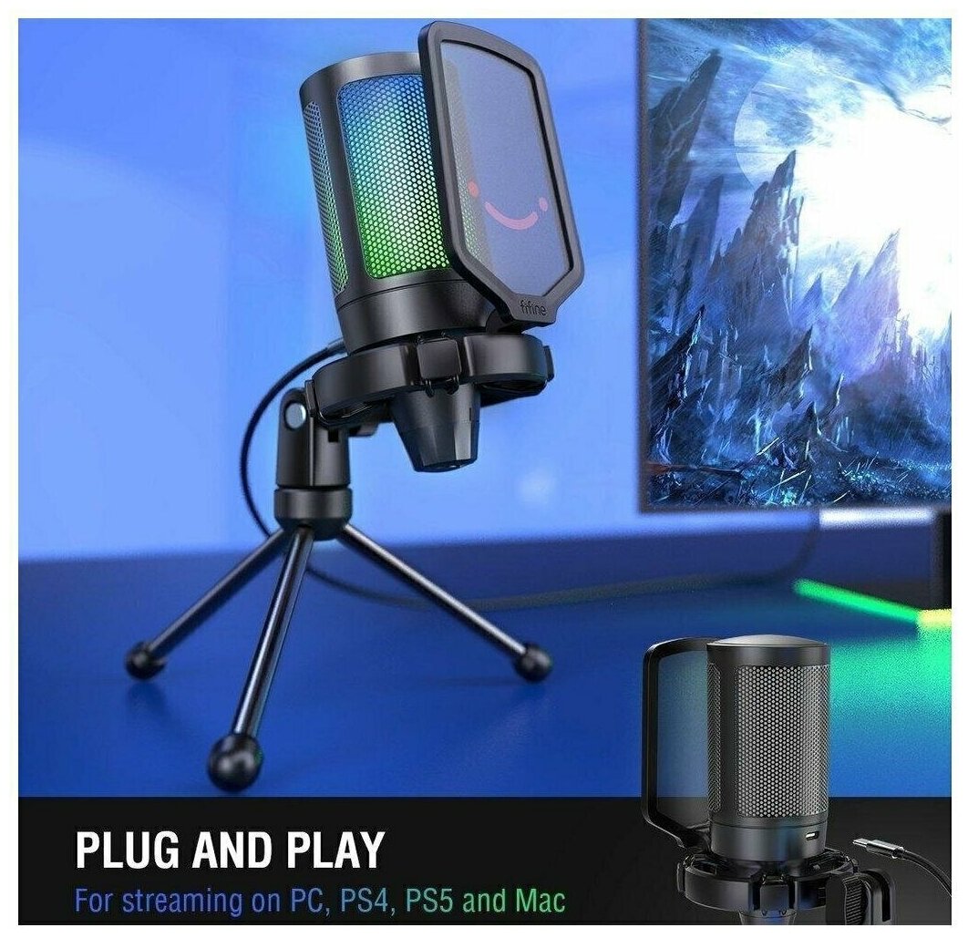 RGB lighting, Mic mute button, Microphone stand, Microphone spider, Backlight, Pop filter, Volume control