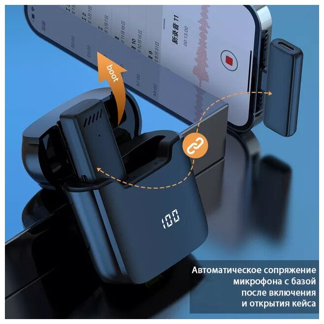 Microphone transmitter - 1 pc., receiver with Type-C connector - 1 pc., charging case - 1 pc., cable for charging case USB - Type-C 25 cm - 1 pc., instructions - 1 pc., cardboard box - 1 pc.