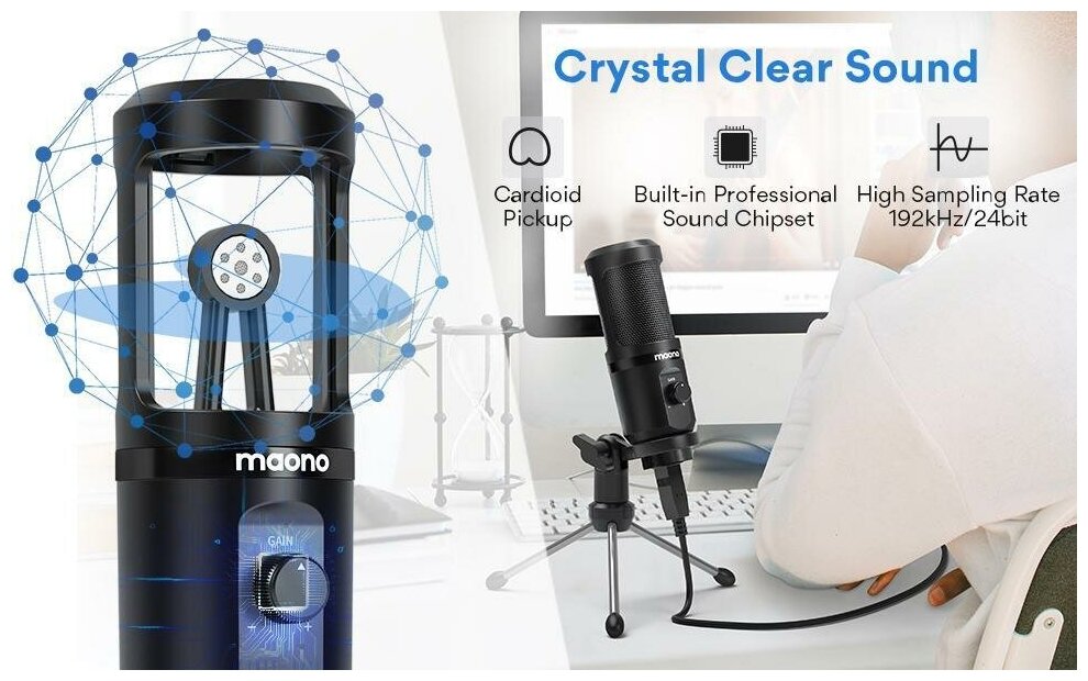 Purpose: for streaming, design: tabletop, type: condenser, connector: USB, polar pattern: cardioid