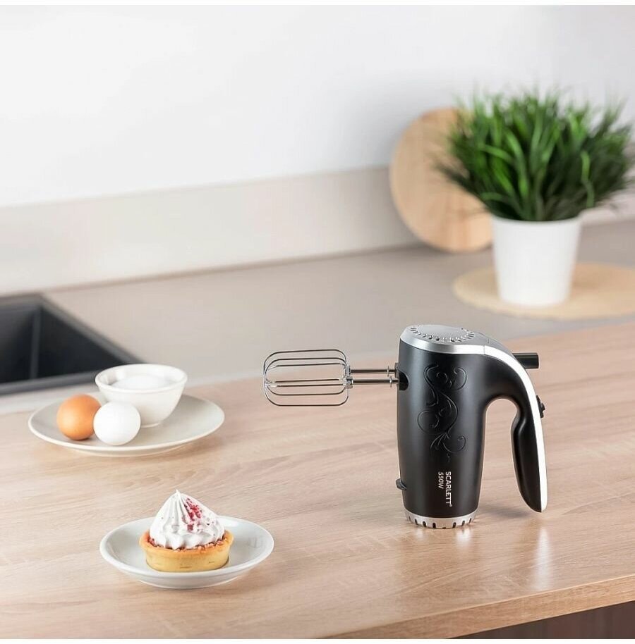 Type: manual, power: 550 W, attachments: whisk for whipping, hooks for kneading dough, bowl material: plastic, body material: plastic, design features: attachment release button, storage device