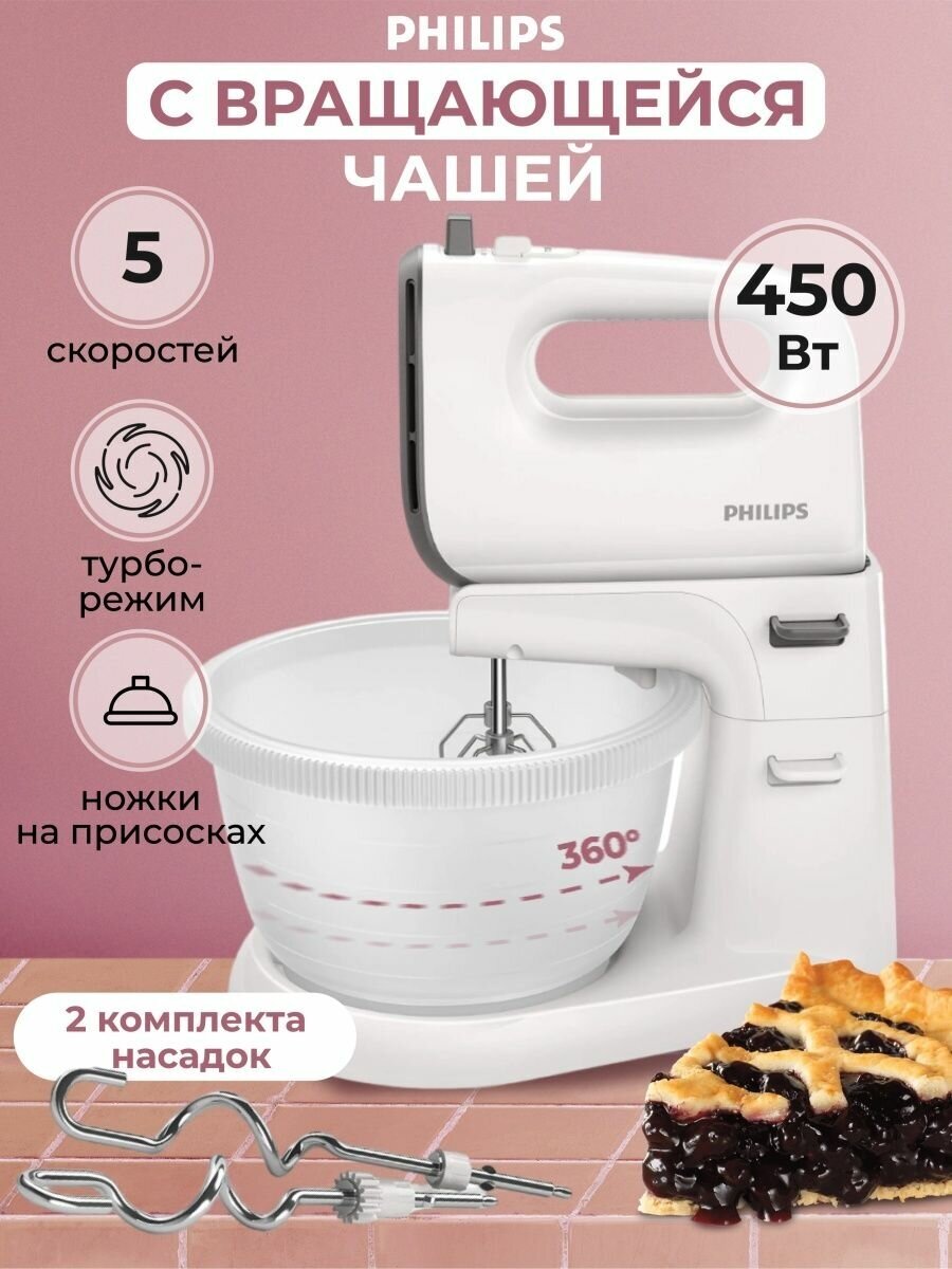 Type: stationary, power: 450 W, attachments: whisk for whipping, hooks for kneading dough, for whipping, for kneading dough, bowl material: plastic, bowl volume: 3 l, body material: metal, plastic, additional