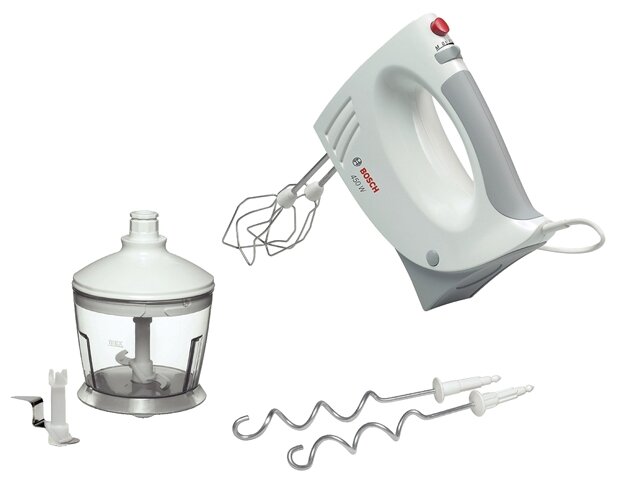Type: manual, power: 450 W, attachments: whisk, dough hooks, additional modes: pulse mode, design features: attachment release button, number of speeds: 5