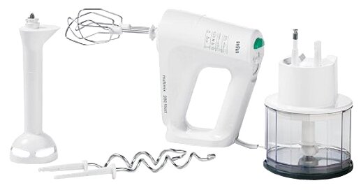 Type: manual, power: 350 W, attachments: whisk, dough hooks, blender attachment, body material: plastic, design features: attachment release button, number of speeds: 3