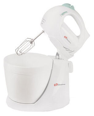 Type: stationary, power: 200 W, attachments: whisk for whipping, hooks for kneading dough, bowl material: plastic, body material: plastic, additional modes: turbo mode, design features: bowl rotation