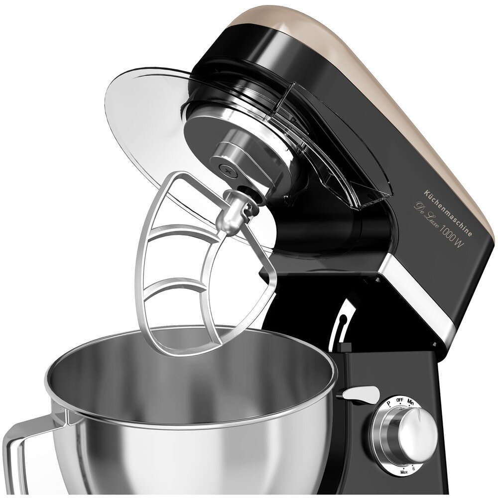 Motor type - AC with copper winding; Contents: body, steel bowl, bowl lid, whisk attachment, mixing attachment, dough kneading attachment, instructions, warranty card
