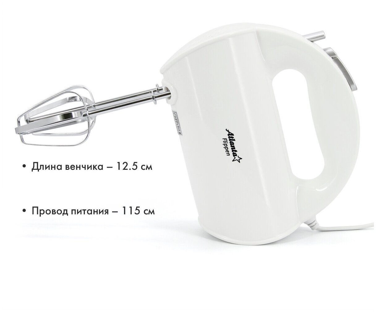 Type: planetary stationary, power: 1100 W, attachments: whisk for whipping, hooks for kneading dough, bowl material: stainless steel, bowl volume: 5 l, body material: plastic, additional modes: pulse �