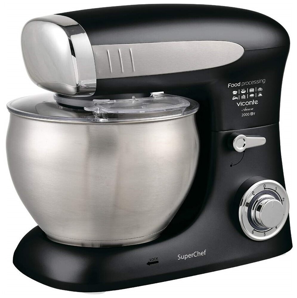 Type: planetary stationary, power: 1100 W, attachments: whisk for whipping, hooks for kneading dough, bowl material: stainless steel, bowl volume: 5 l, body material: plastic, additional modes: pulse �