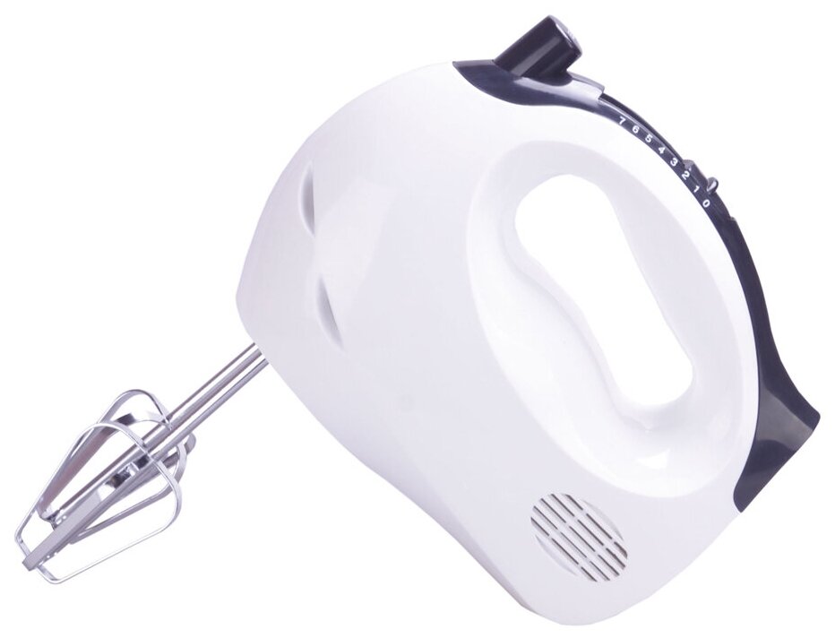 Type: manual, power: 200 W, attachments: whisk, hooks for kneading dough, body material: plastic, design features: attachment release button, number of speeds: 5