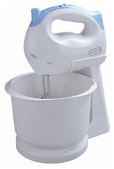 Type: planetary stationary, power: 100 W, attachments: whisk, bowl material: plastic, bowl volume: 2.50 l, body material: plastic, design features: attachment release button, number of speeds: 7