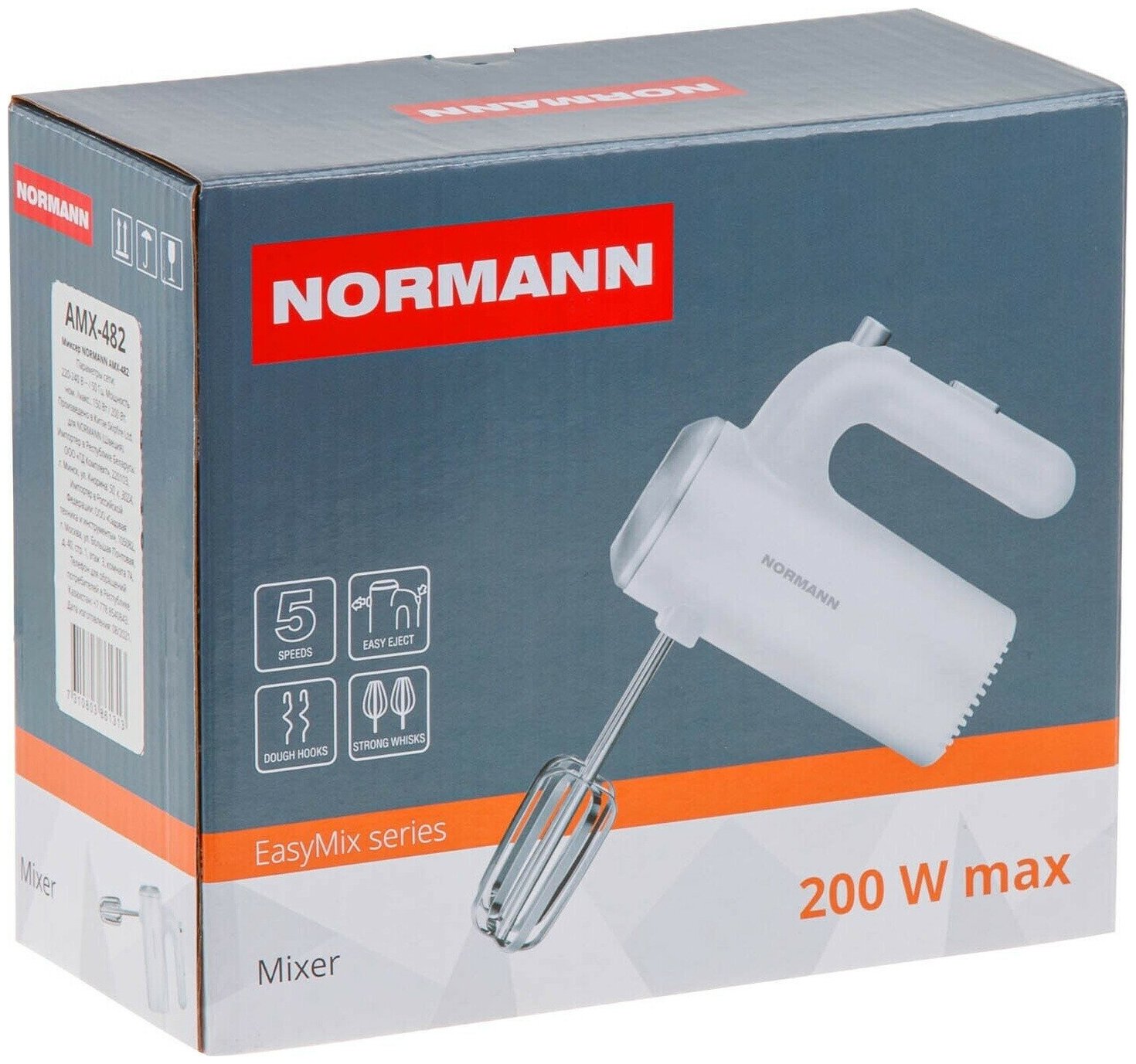 Type: manual, power: 200 W, attachments: whisk, dough hooks, body material: plastic, number of speeds: 5