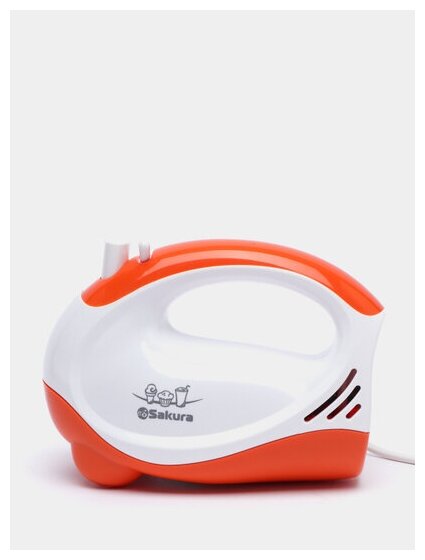 Type: manual, power: 250 W, attachments: whisk, hooks for kneading dough, body material: plastic, design features: attachment release button, number of speeds: 5