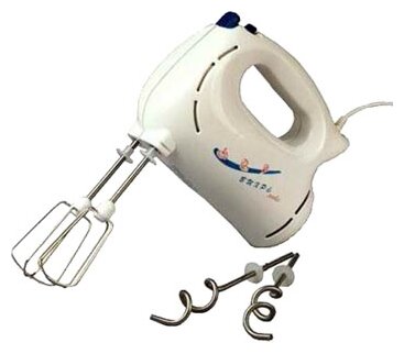 Type: manual, power: 160 W, attachments: whisk, hooks for kneading dough, body material: plastic, design features: attachment release button