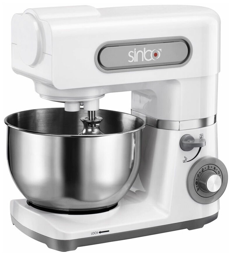 Type: stationary, power: 800 W, attachments: whisk for whipping, hooks for kneading dough, bowl material: stainless steel, bowl volume: 4 l, body material: plastic, additional modes: pulse mode, number s