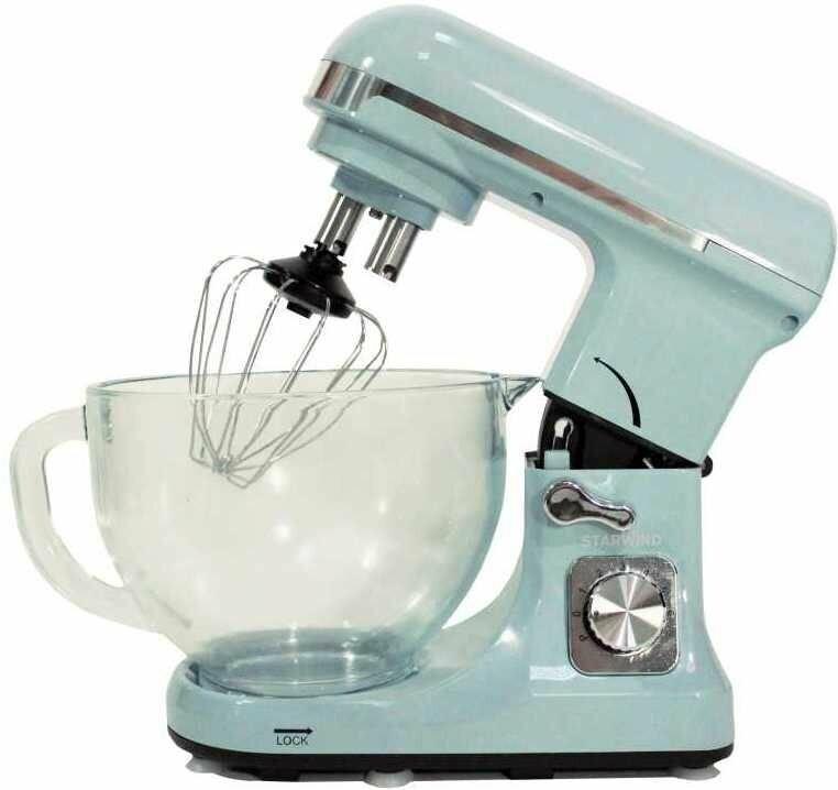 Type: stationary, power: 1000 W, attachments: whisk for whipping, hooks for kneading dough, bowl material: glass, additional modes: pulse mode, design features: protective cover for the bowl, number of speed