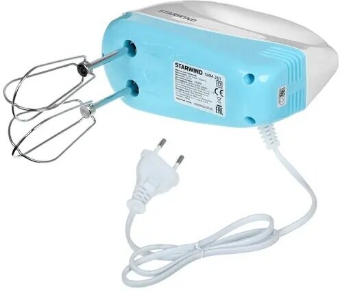 Type: manual, power: 250 W, attachments: whisk, hooks for kneading dough, body material: plastic, design features: attachment release button, number of speeds: 5