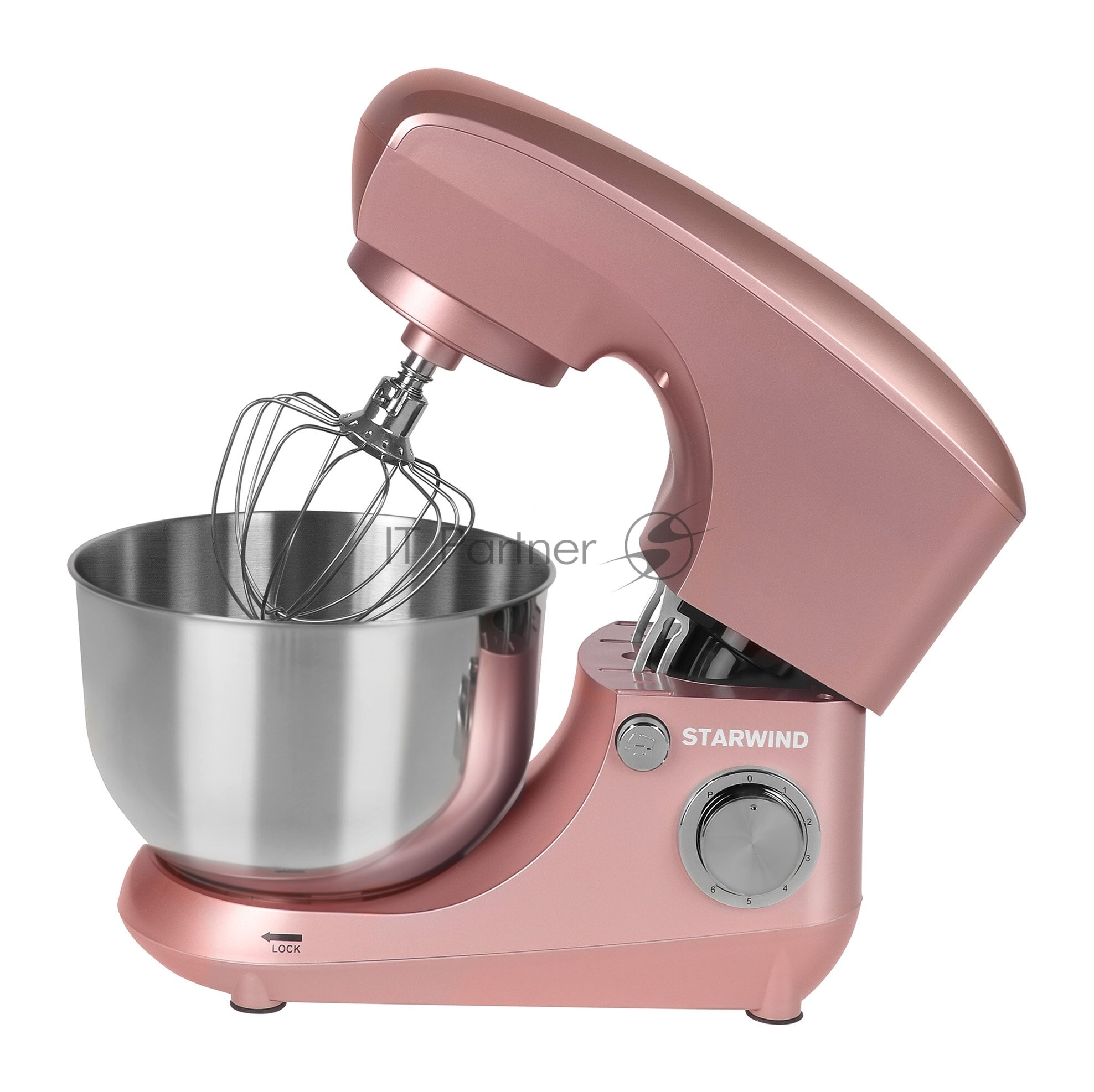 Mixer – 1 pc., bowl – 1 pc., plastic shield – 1 pc., mixing spatula – 1 pc. hook for kneading dough – 1 pc., whisk for whipping – 1 pc., warranty card – 1 pc., user manual – 1 pc.