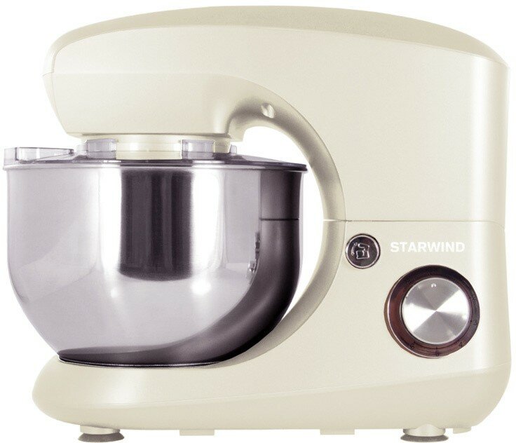 Mixer – 1 pc., bowl – 1 pc., plastic shield – 1 pc., mixing spatula – 1 pc. hook for kneading dough – 1 pc., whisk for whipping – 1 pc., warranty card – 1 pc., user manual – 1 pc.
