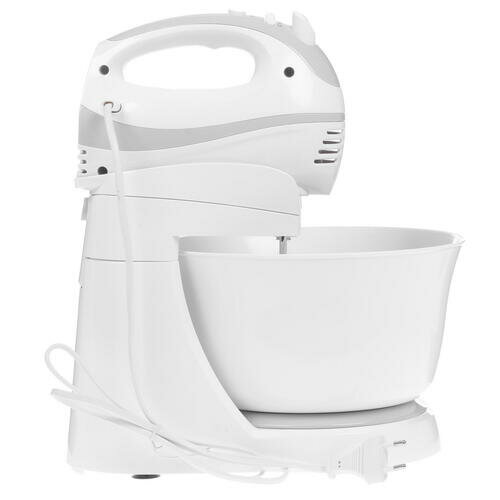 Type: planetary stationary, power: 1100 W, attachments: whisk for whipping, hooks for kneading dough, bowl material: stainless steel, bowl volume: 5 l, body material: plastic, additional modes: pulse �