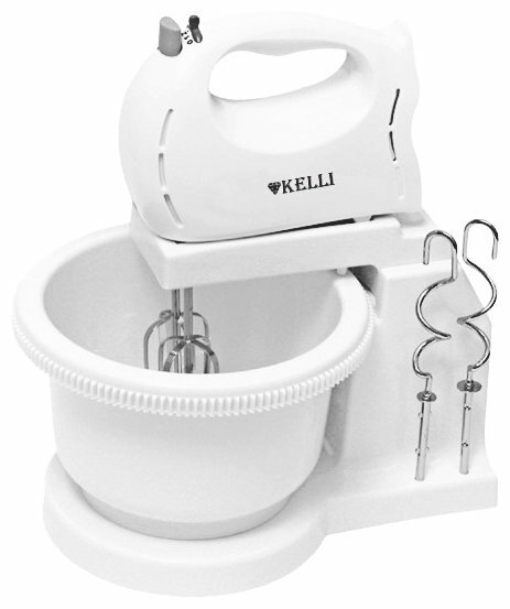 Type: stationary, power: 600 W, attachments: whisk for whipping, hooks for kneading dough, bowl material: plastic, bowl volume: 2.50 l, body material: plastic, design features: bowl rotation, release button