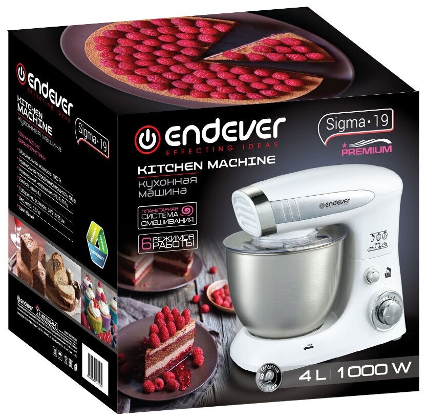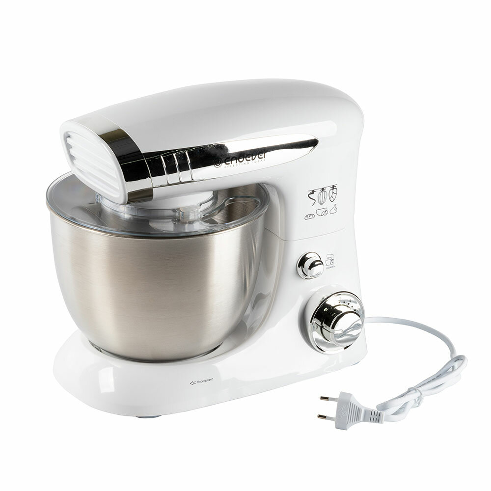 Description: Power: 1000 W, attachments: whisk for whipping, hooks for kneading dough, spatula, bowl material: stainless steel, bowl volume: 4 l, body material: metal, plastic, design features: protective cover for the bowl,