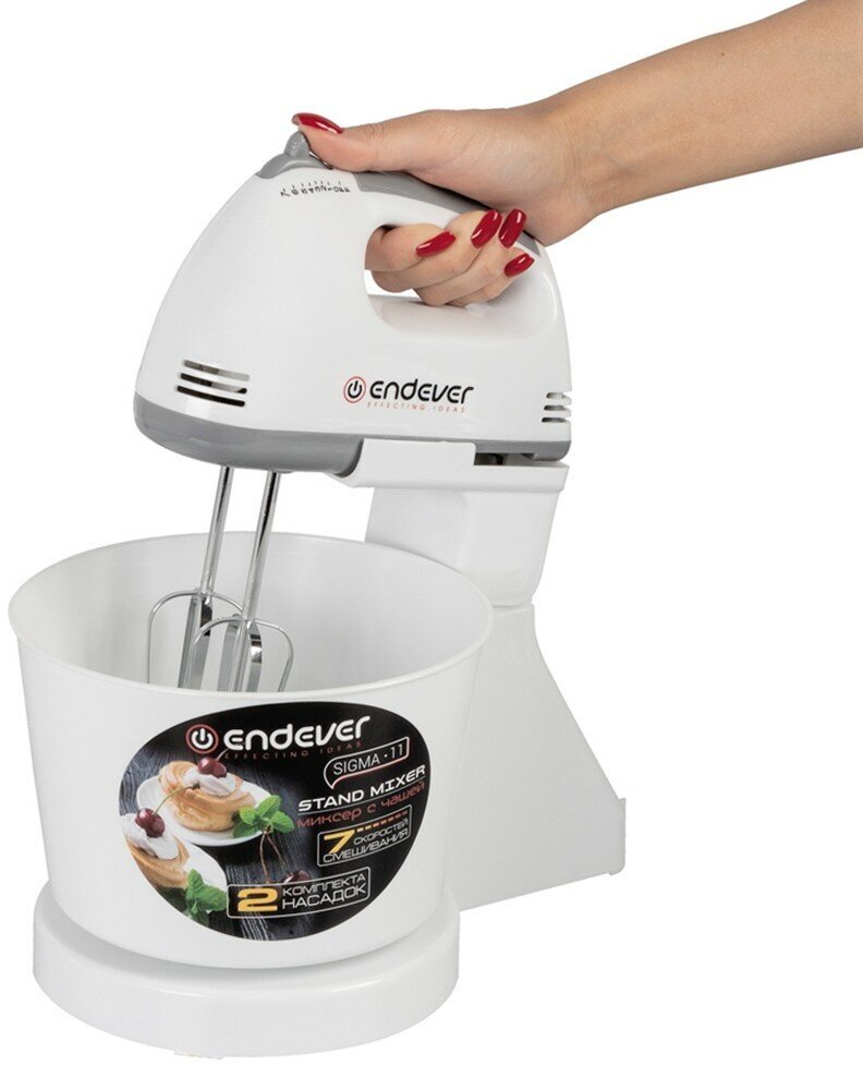 Removable mixing bowl, stable base; overall dimensions - 28*19*29 cm; delivery set - mixer, whisks, dough attachments, removable bowl, bowl base, instruction manual, warranty