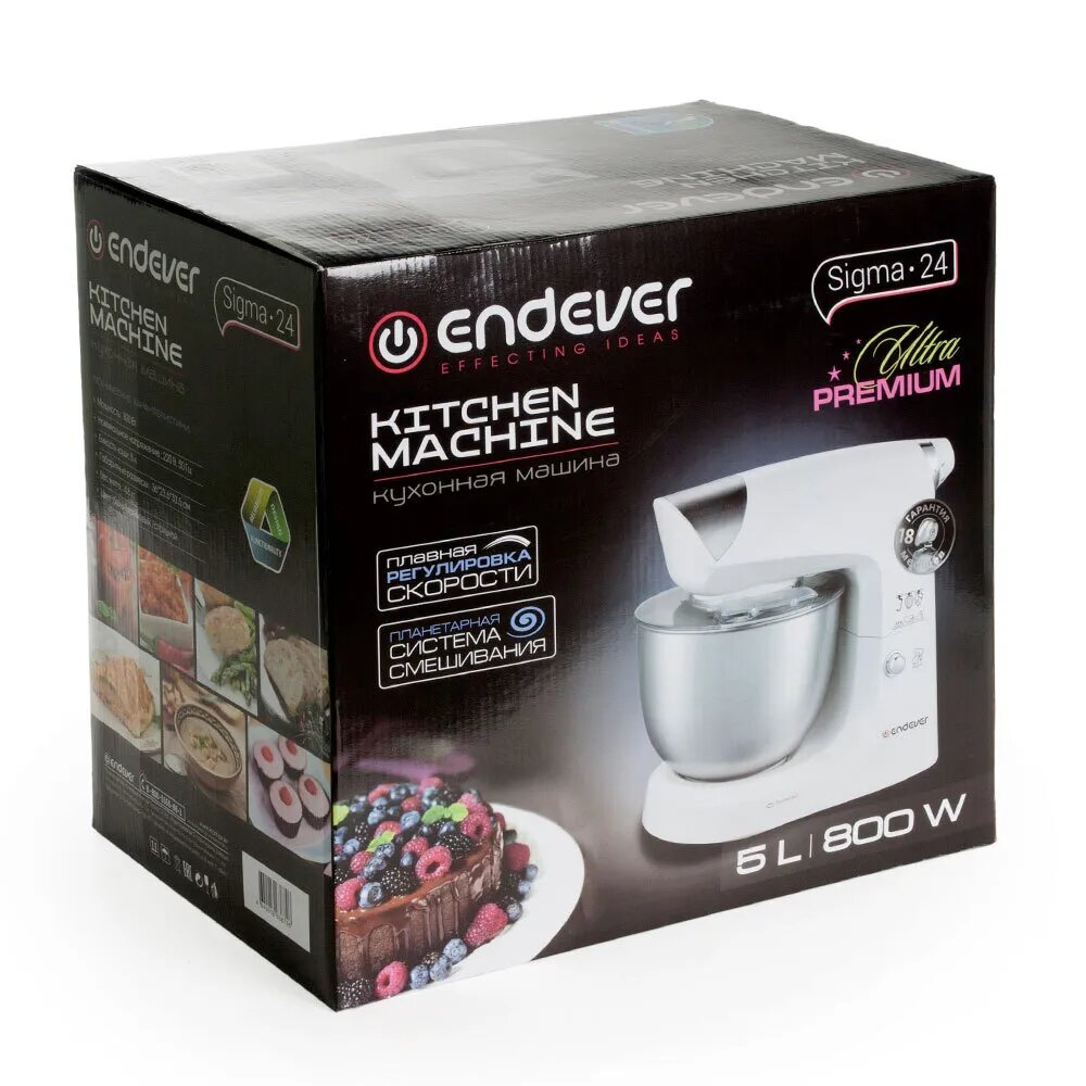 Folding upper console for removing the bowl, smooth speed adjustment, transparent cover for the bowl, quiet operation; overall dimensions: 36*23.6*33.5 cm; delivery set: planetary mixer, removable bowl with lid, pump