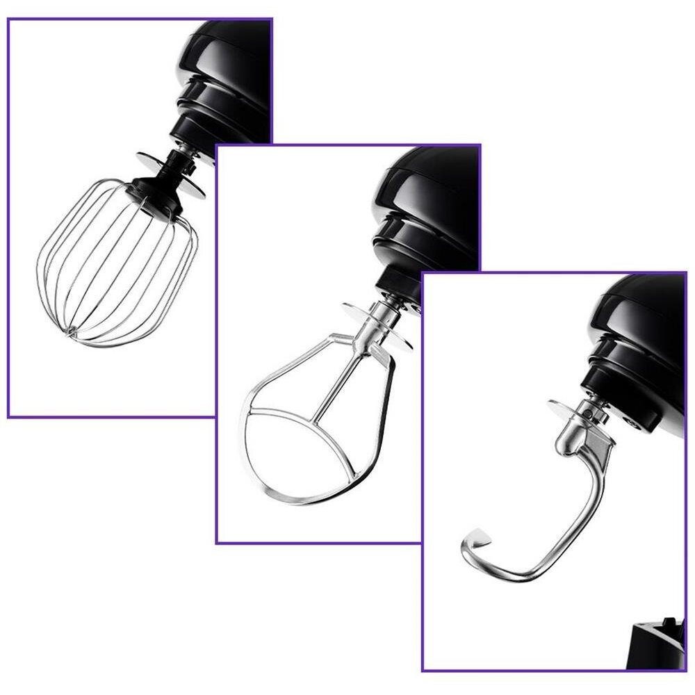 Type: planetary stationary, power: 1300 W, attachments: whisk for whipping, hooks for kneading dough, attachment for making purees, bowl material: stainless steel, bowl volume: 5 l, body material: plastic, additional