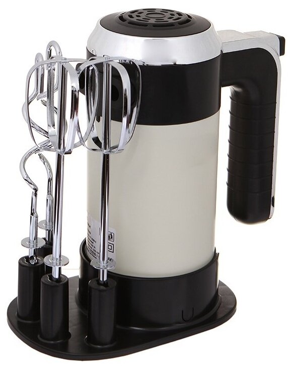 Contents: 1. Mixer - 1 pc. 2. Whisk - 2 pcs. 3. Hook - 2 pcs. 4. Stand - 1 pc.